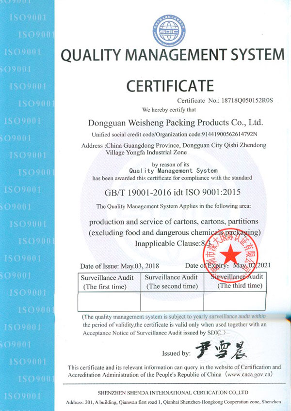 東莞市偉盛包裝制品有限公司成立于2010年,已通過ISO9001質量體系和ISO14001環(huán)境體系認證,公司占地面積5000平方米,十幾年的發(fā)展,公司一直致力于紙箱、紙盒、啤盒、彩盒、飛機盒等紙制品,廣泛應用于電子,家私、工藝品、燈飾、五金、塑膠等產(chǎn)品的包裝上,歡迎新老客戶致電垂詢。